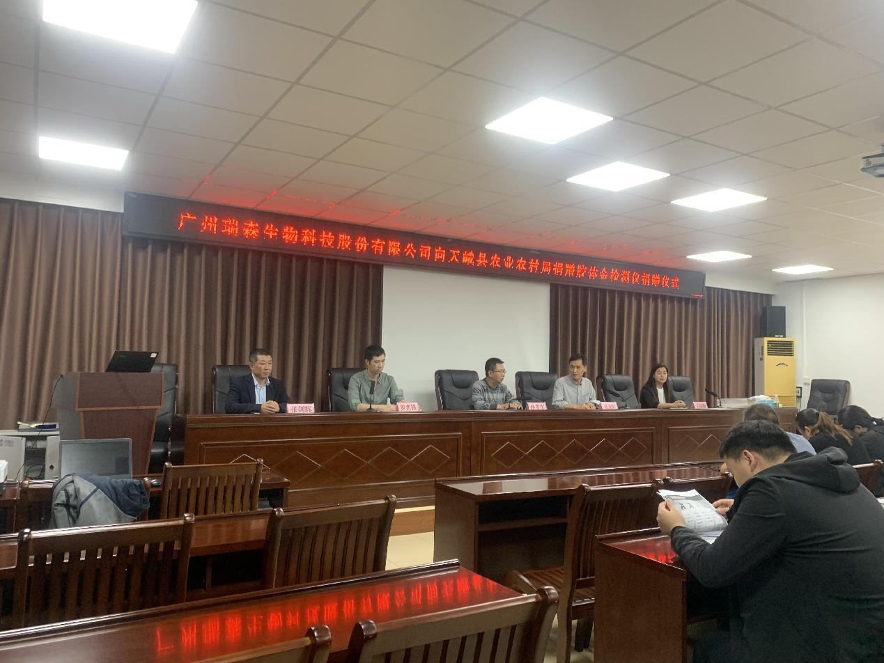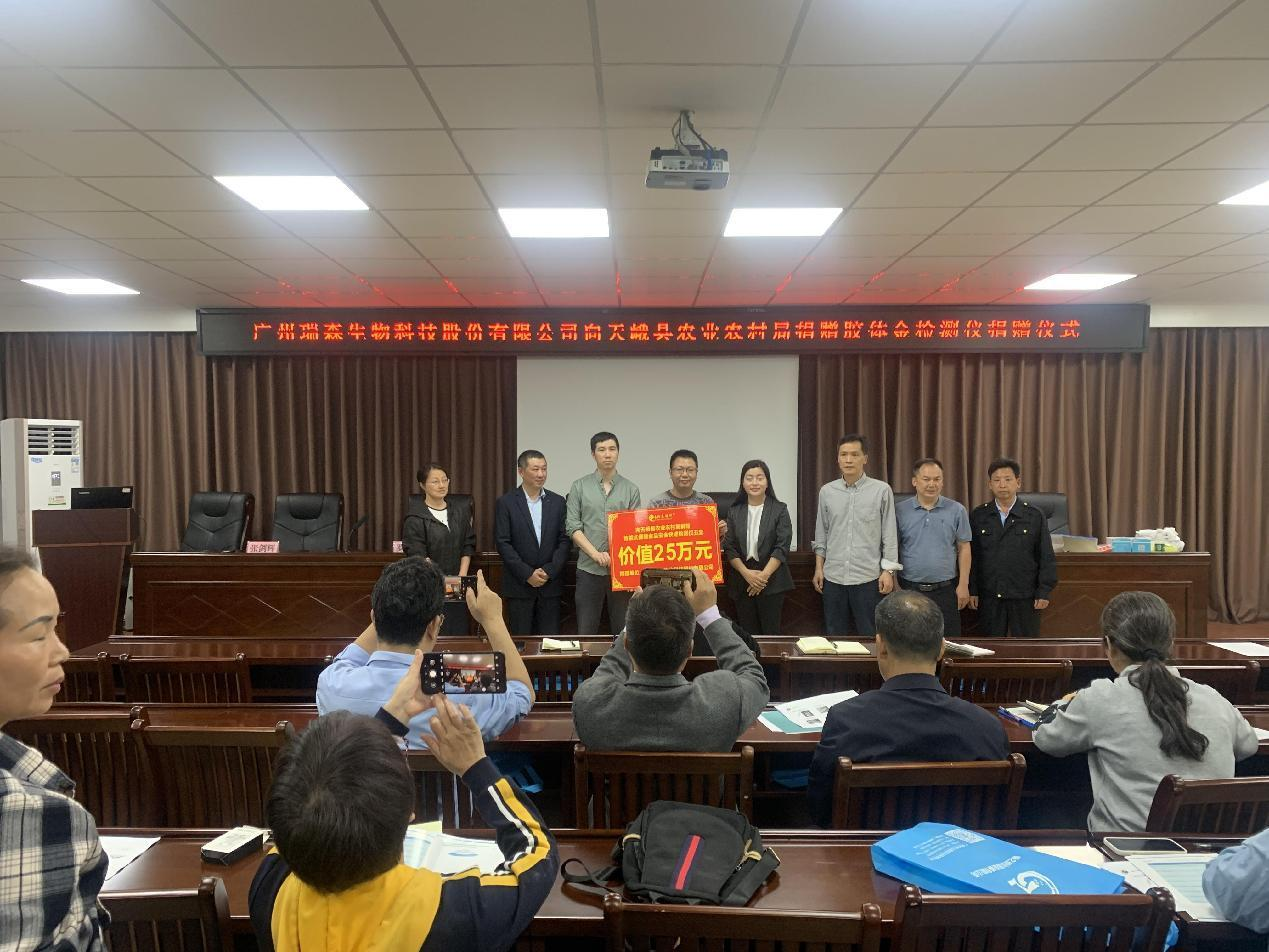 在捐赠仪式上,安博体育登录官网向天峨县捐赠先进检测仪器设备共5套,价值25万元。表达了瑞森生物公司对广西红色革命老区“中国长寿之乡”天峨县的热心支持,旨在希望未来能够更好的为革命老区在食品安全快检监督工作开展方面提供技术保障和优质服务,为天峨县老百姓能够吃上绿色、安全、放心的食用农产品贡献企业的一份力量。