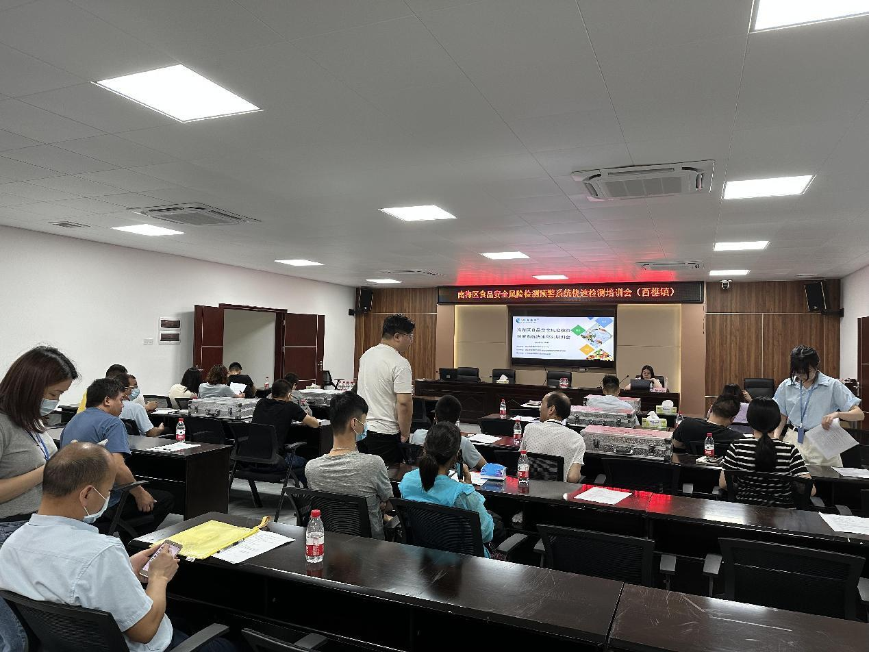 为确保2023年“南海区食品安全检测大数据风险分析系统保障食品安全工作”项目的顺利开展,佛山市南海区市场监督管理局委托广州市瑞森生物科技股份有限公司会同南海区各镇(街道)市场监督管理所于2023年5月5日-19日期间为南海区全区各食品安全风险监测点人员开展食用农产品农药残留快速检测培训工作。本次培训活动由南海区各镇(街道)市场监督管理所与瑞森生物公司共同组织开展。培训活动规模庞大,参加培训的人员为南海区全区各食品安全检测大数据风险分析系统保障食品安全工作项目风险检测点相关操作人员及负责人,培训对象包括了南海区全区7个镇街954个自检单位(含:农贸市场,超市,配送企业,酒店,餐饮店和学校,医院,机关单位,敬老院等单位食堂)。