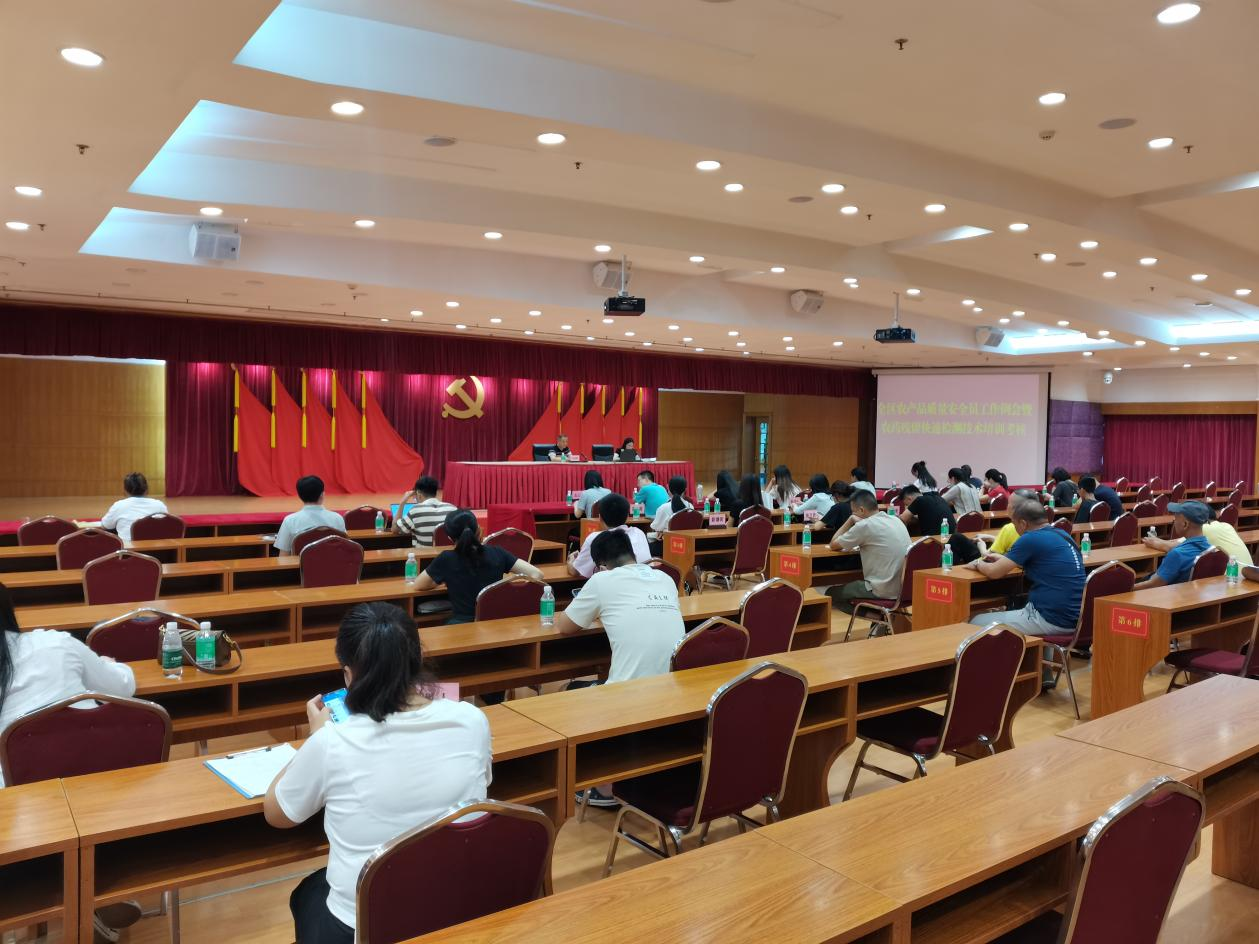 为强化广州市农产品质量安全监测体系建设,提升各级农产品质量安全监测机构的检测能力,切实保障产地农产品质量安全。2023年7月28日,”天河区农产品质量安全员工作例会暨农药残留快速检测技术培训考核会议“在天河区人民政府机关大院2号楼会议室召开。天河区农业农村局分管领导、全区各街道办全体专职农产品质量安全员及农业线口主要工作人员、全区各经济联社农业线口主要工作人员参与了本次培训会议。安博体育登录官网技术培训同事受邀为本次培训班所有参训人员就“食用农产品快检技术介绍”课题做了培训,并取得良好效果。