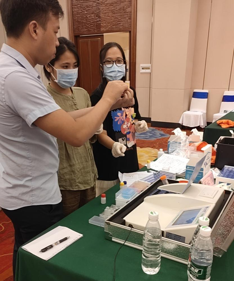 另外,在快检实操培训课上,瑞森生物技术培训同事通过现场实操检测食用农产品的方式,让参会人员亲眼目睹并体验了整个食用农产品快速检测操作的过程,并系统的讲解了农产品胶体检测操作流程的有关技术要点,以及详细介绍了仪器设备的使用方法和工作原理、日常维护管理等相关方面的注意事项,同时讲解了试剂和耗材的使用规范、储存管理、日常维护等内容。为参会人员提供了一场全面、细致、丰富的理论与实践相结合的培训指导课程,以此帮助参会人员快速提升食品安全专业知识水平以及加强快检技能的动手能力,使快检工作人员能够更好的适应相关岗位的工作要求。 在全体参会人员的共同努力下,本次培训班会议取得了圆满成功,培训效果获得了湛江市市场监督管理局相关领导的高度好评。通过此次食用农产品快速检测工作的培训,不仅全面提升了湛江市食品安全快检从业人员的专业技术能力及水平,而且为进一步提升全市食用农产品质量安全奠定了基础,提供了有力保障。相信在瑞森生物公司的全力支持与配合下,湛江市在食品安全快速检测领域的未来将会越来越好!免责声明:文章、视频、图片等所有内容,仅用于学习交流,若有侵权内容及其他涉法内容,请及时联系删除或修改。